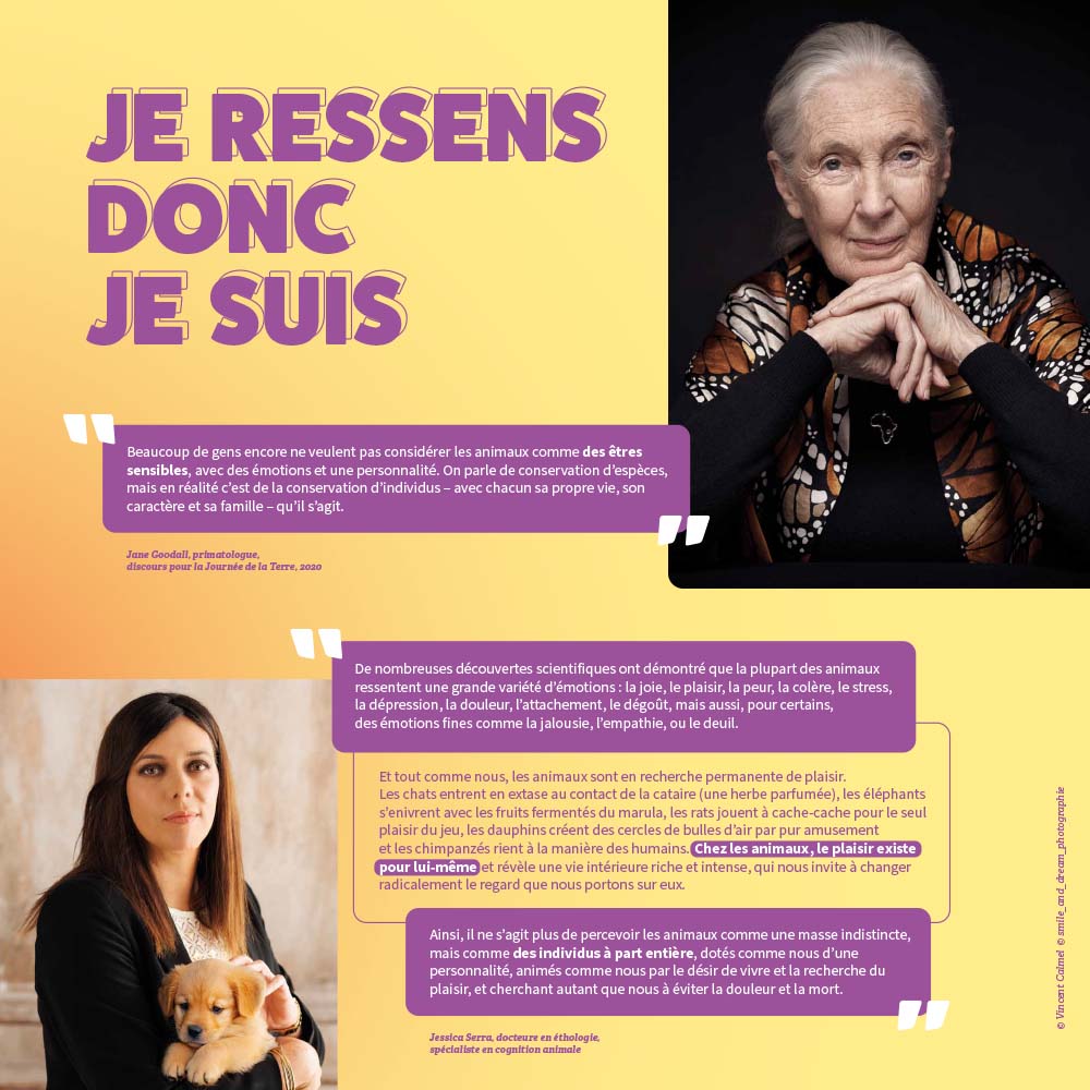 L’exposition « Sensibles » est proposée par L214 Éducation en partenariat avec le Jane Goodall Institute France.