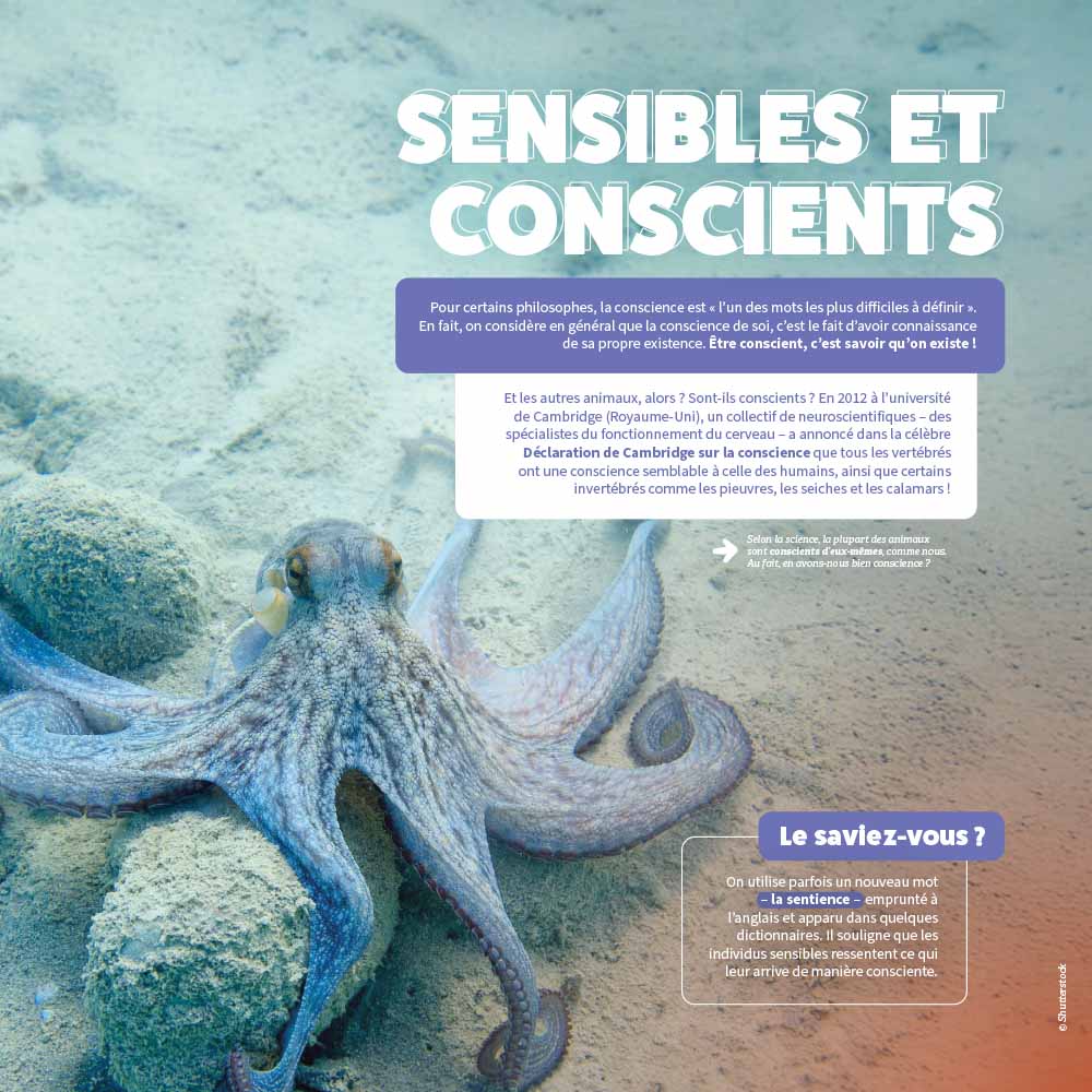 2012 / La Déclaration de Cambridge sur la Conscience a été prononcée le 7 juillet 2021 à l’issue d’un colloque international réunissant de nombreux chercheurs en neurosciences. Elle reconnaît que « les humains ne sont pas seuls à posséder les substrats neurologiques de la conscience. Des animaux non-humains, notamment l’ensemble des mammifères et des oiseaux ainsi que de nombreuses autres espèces telles que les pieuvres, possèdent également ces substrats neurologiques. »