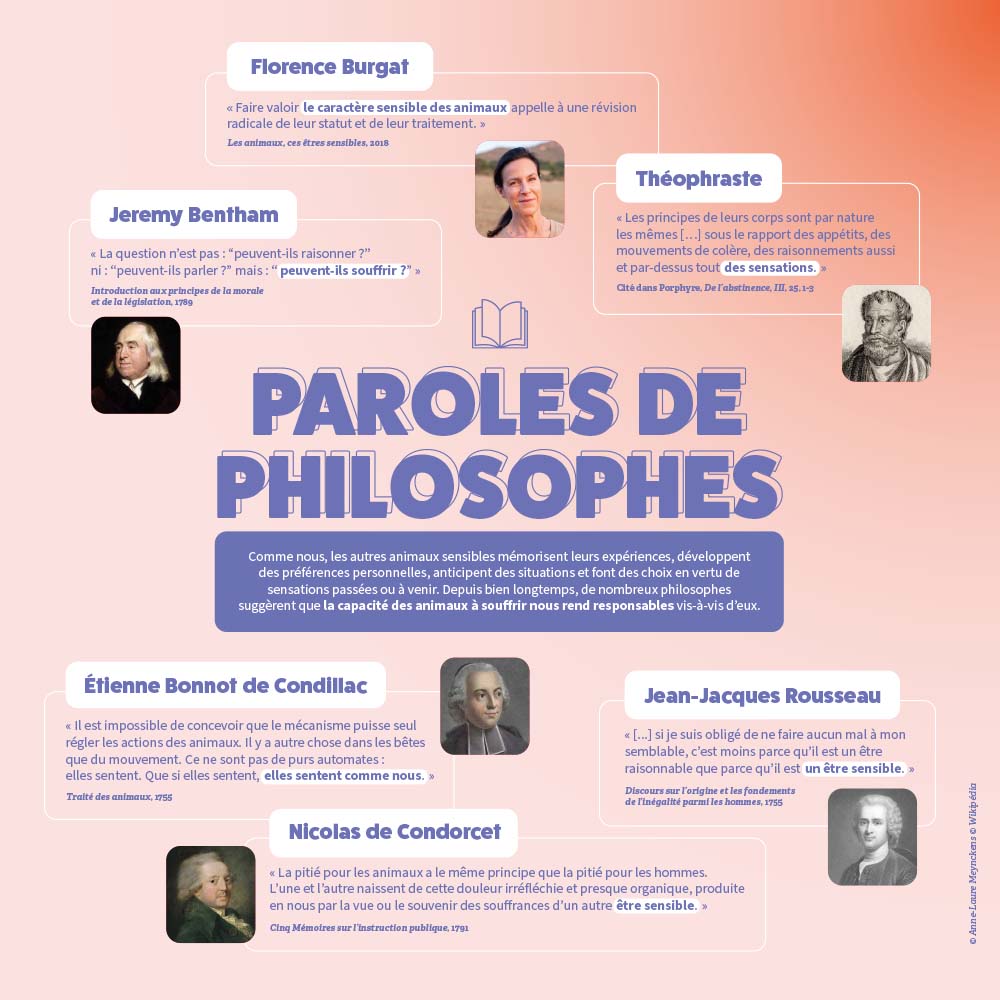 La question animale dans l’histoire de la philosophie, de l’Antiquité à nos jours. Les dernières découvertes sur les émotions et l’intelligence animales. Sur quoi se fondent les lois actuelles de protection animale, et à quelles traditions philosophiques puisent-elles ? Quelles évolutions envisager pour le 21e siècle ?